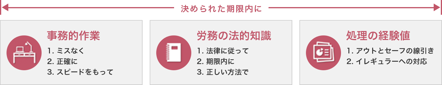 これらの仕事は、社会保険労務士や弁護士でも3年程度の経験を要します。