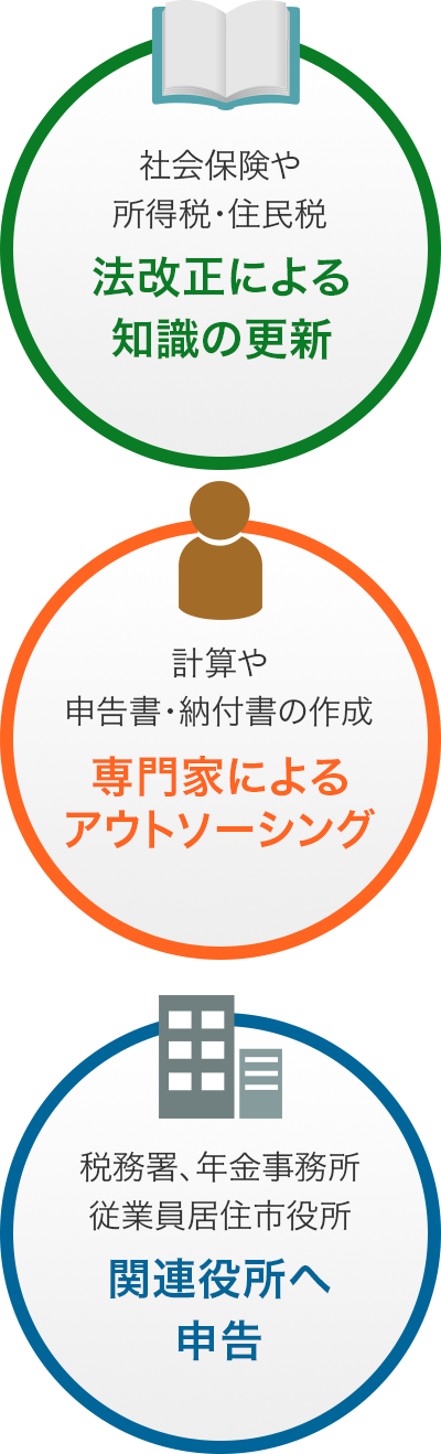給与計算や社会保険・雇用保険・労災手続きなどの複雑な事務作業も多くなり、